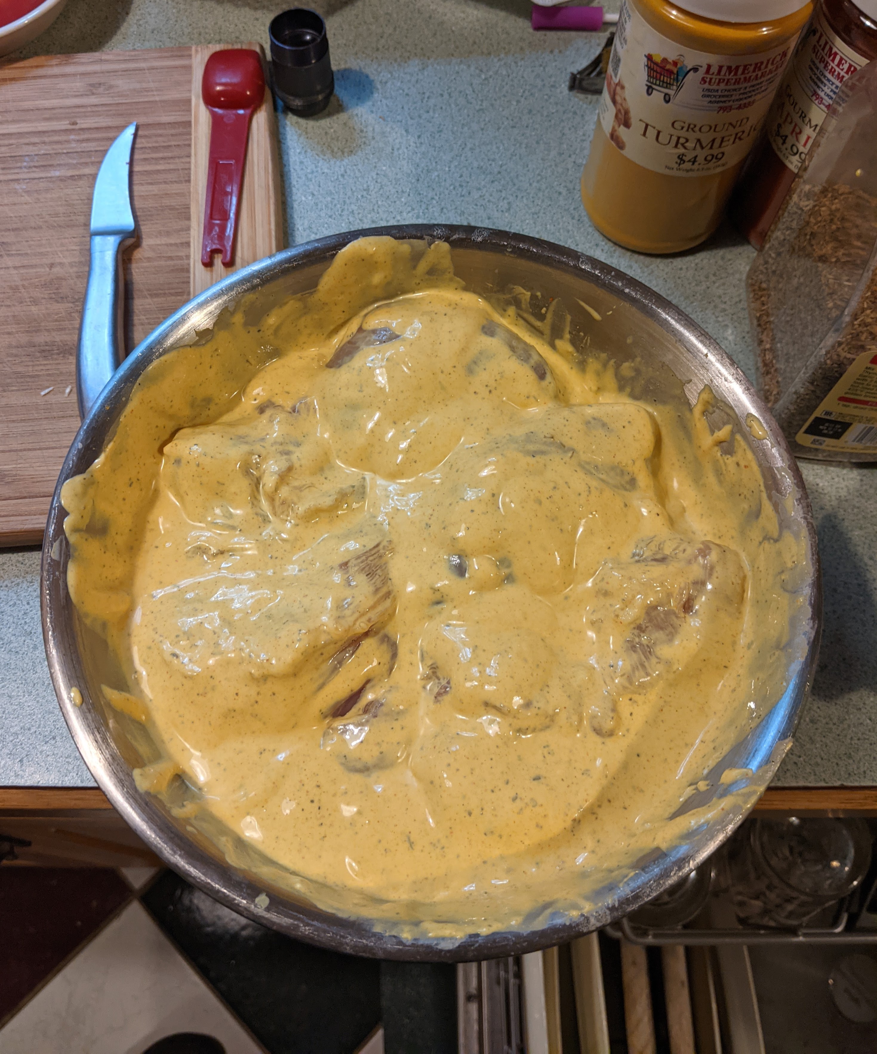 I came across a video showing how to make what looked like a really easy and delicious chicken dish, but I couldn't seem to find what it was called. After watching it, I used the info I'd gleaned from the presentation - coating chicken breasts with batter before frying - to come up with my own name : Battered Breasts. Not very appealing, is it? I suppose Coated Breasts is less shocking, but it's oh so dull!