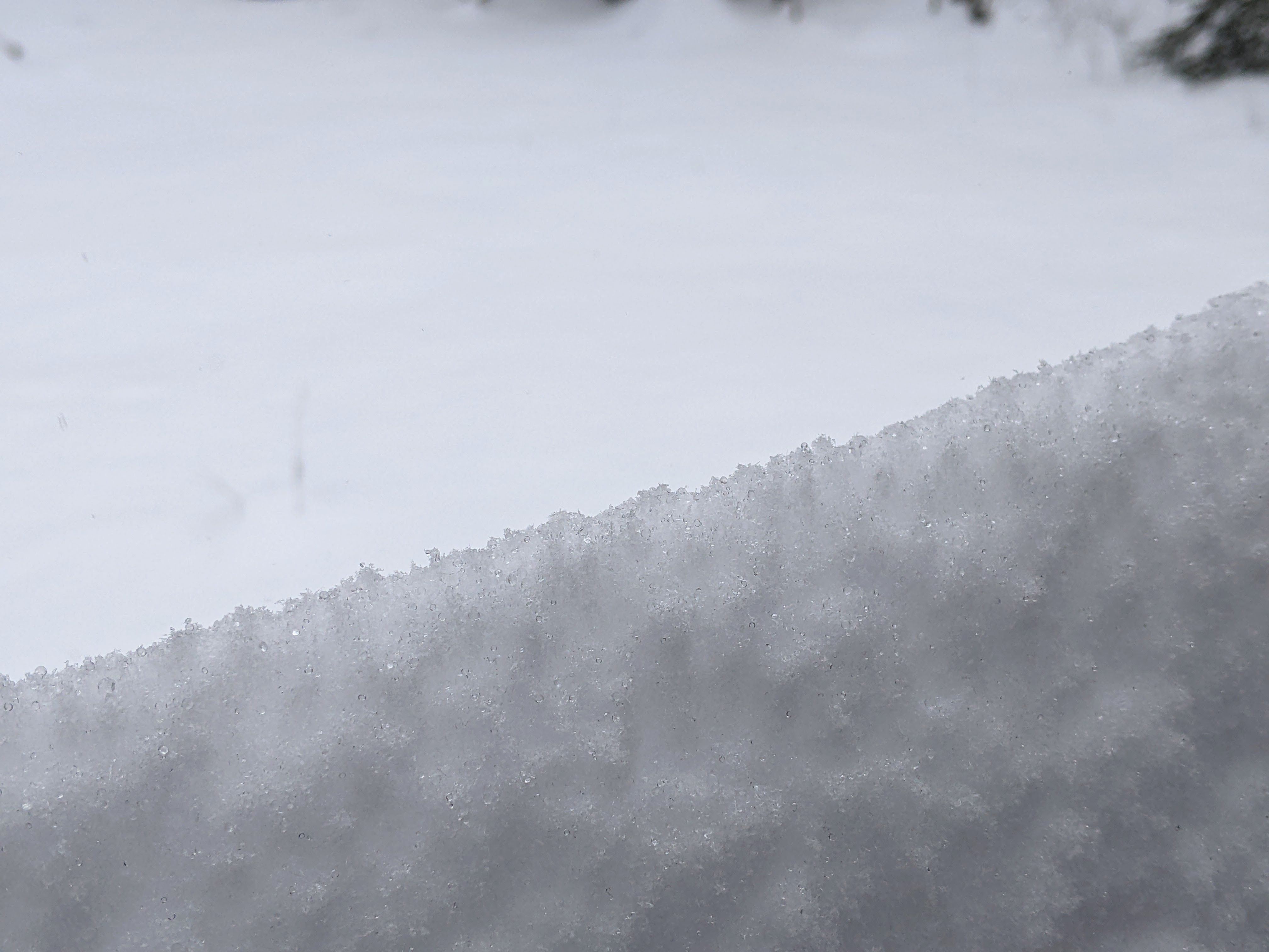 Look at this faintly dirty snow photographed in a pristine area (not a parking area or highway) after our recent snowstorm - it shows that there are fine particulates in the air of which we're not usually aware. They're only visible here because of the contrast with the substrate on which they have landed. The uneven textured surface of the snow also highlights the discoloration.